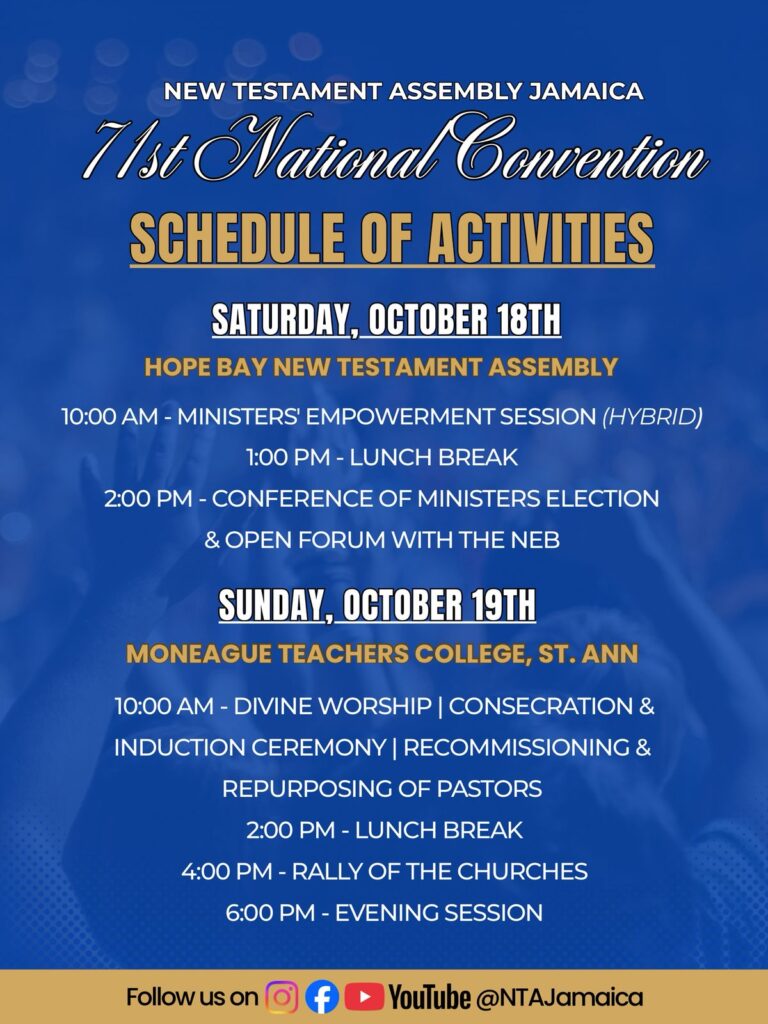 The New Testament Assembly Jamaica will celebrate its 71st National Convention with two impactful days of worship, leadership development, and celebration. The event brings together ministers, members, and congregations from across Jamaica for a time of renewal, recommitment, and connection.